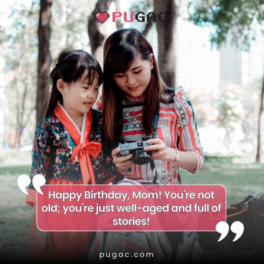 38. “Happy Birthday, Mom! You’re not old; you’re just well-aged and full of stories!”