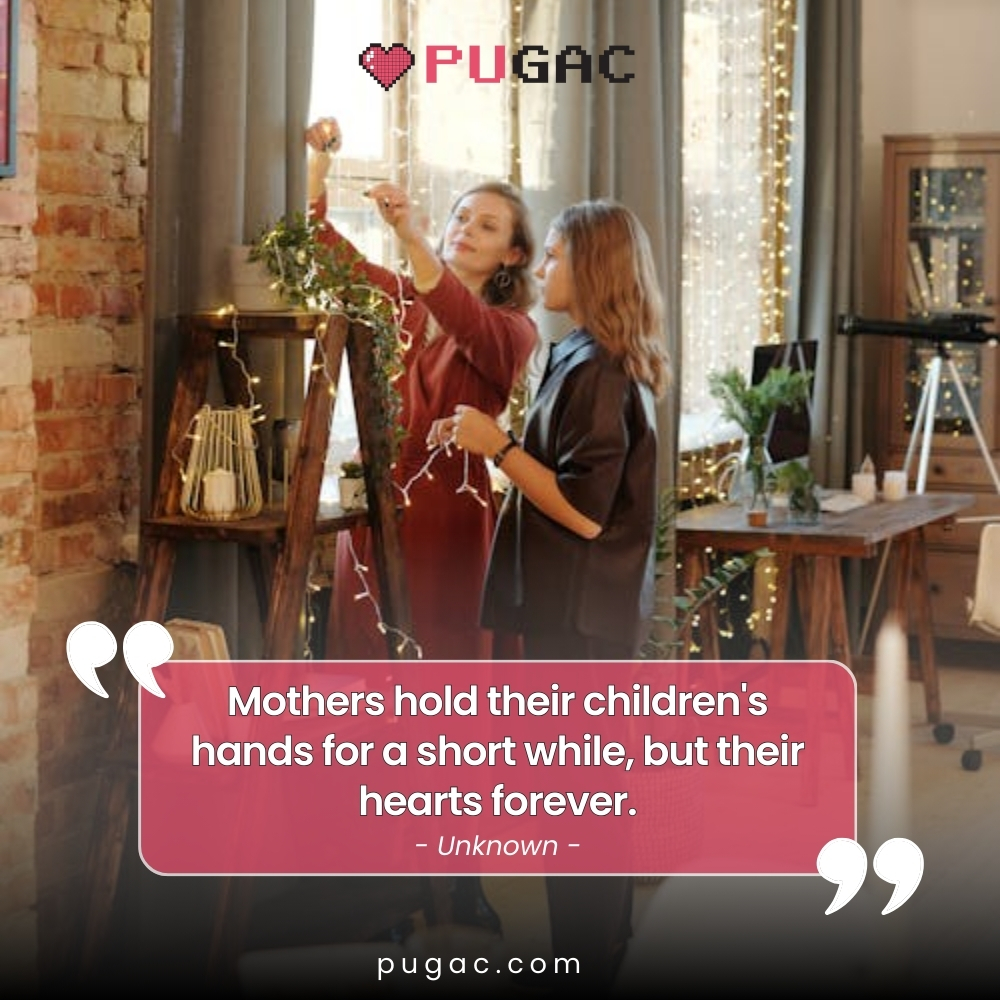 41. “Mothers hold their children’s hands for a short while, but their hearts forever.” – Unknown