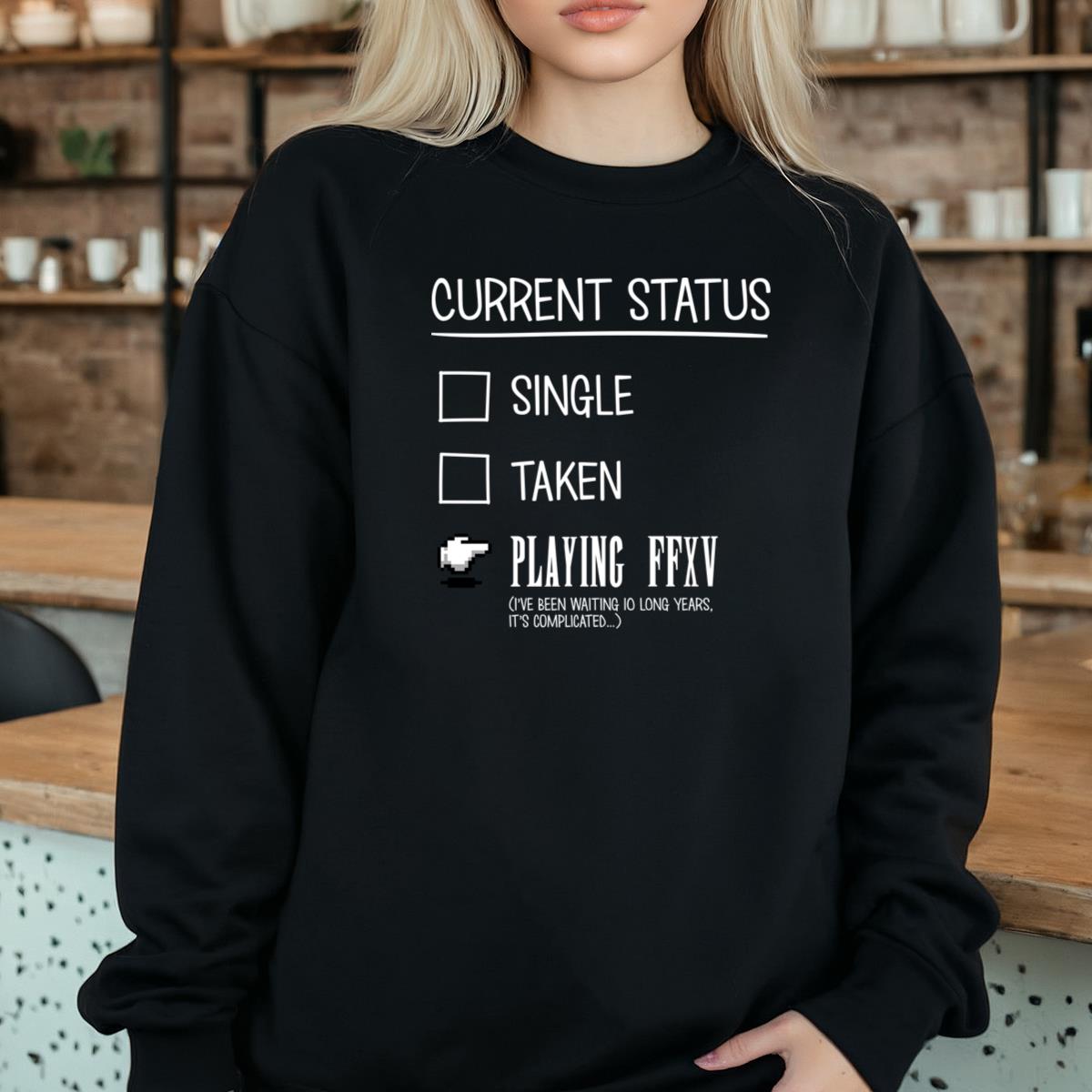 Check out our Current Status Playing FFXV Funny Gamer Graphic T-Shirt collection, available in diverse colors. With unique designs for major holidays and events, they’re perfect gifts for family, friends, and colleagues.