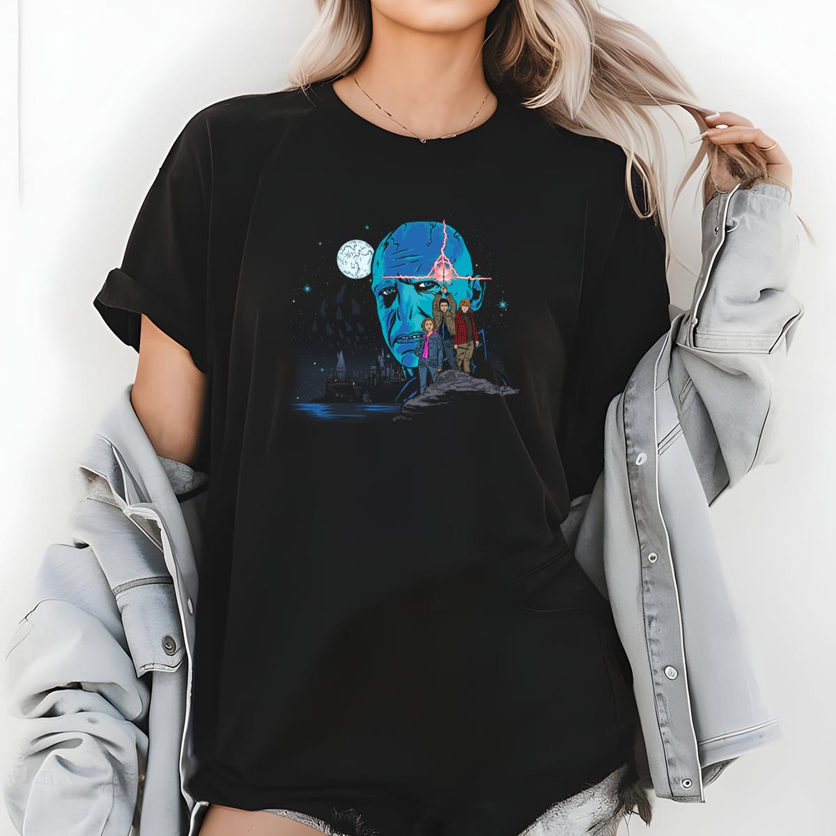 Harry Potter Trio Vs Voldemort Graphic Tee Wizards Magic Cool T-Shirt