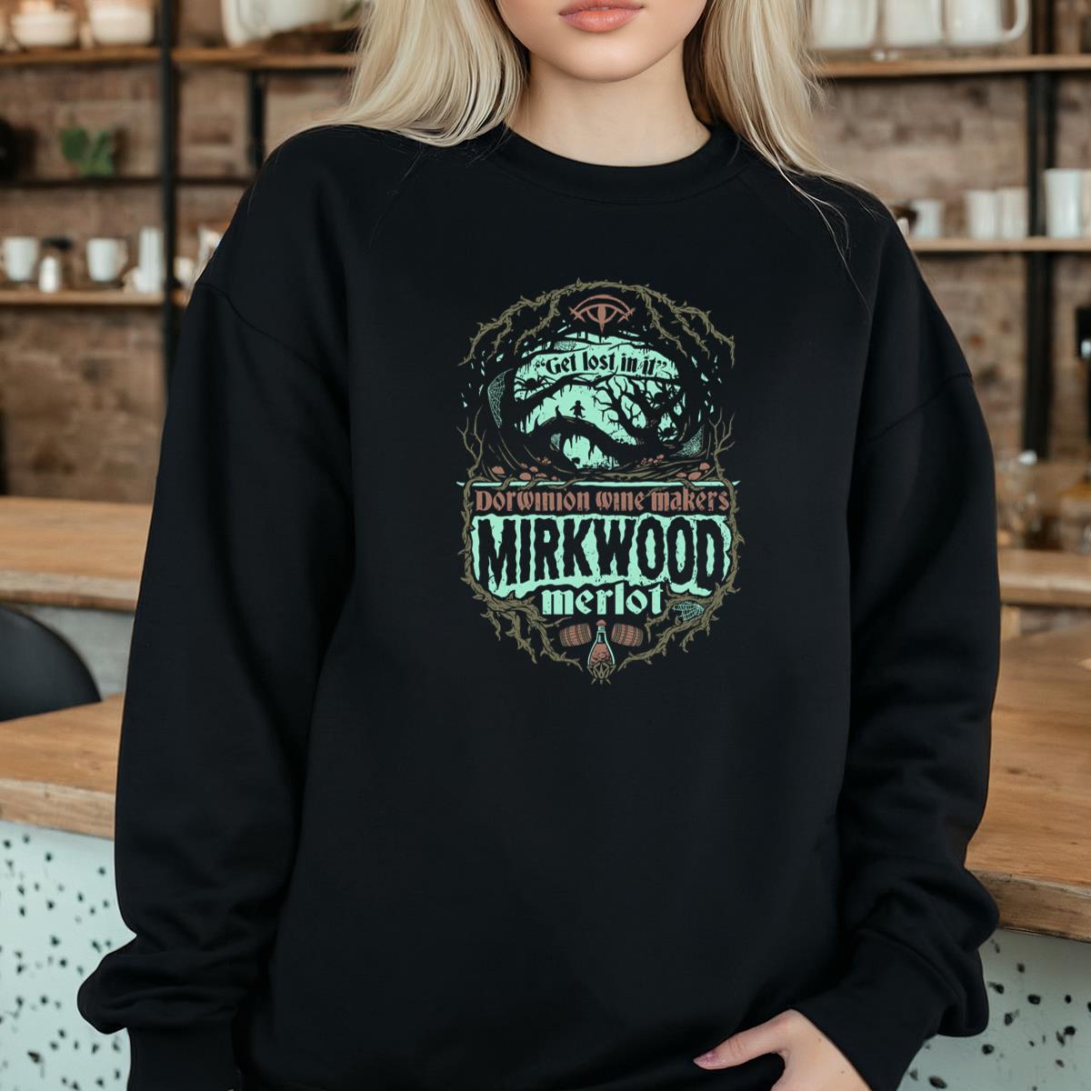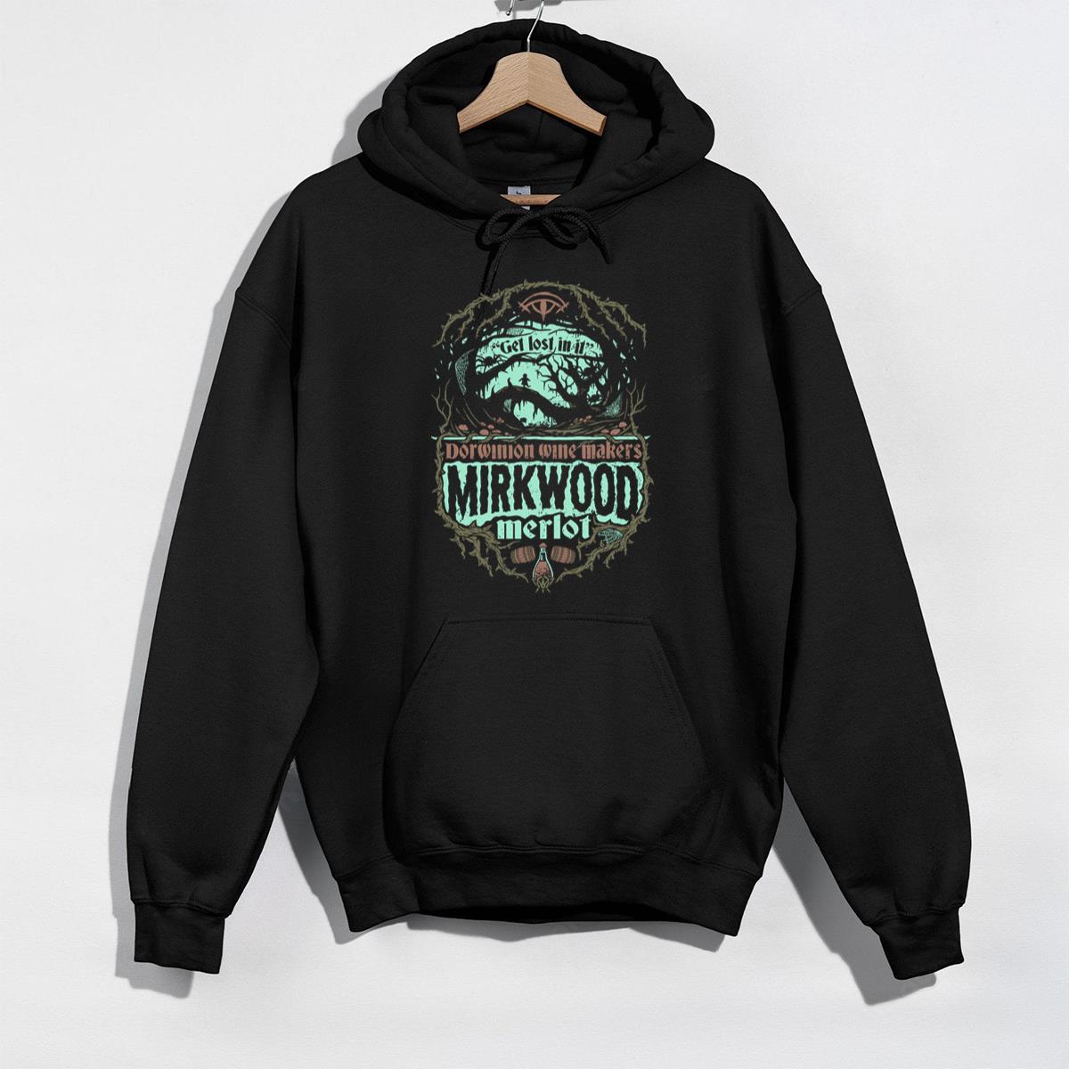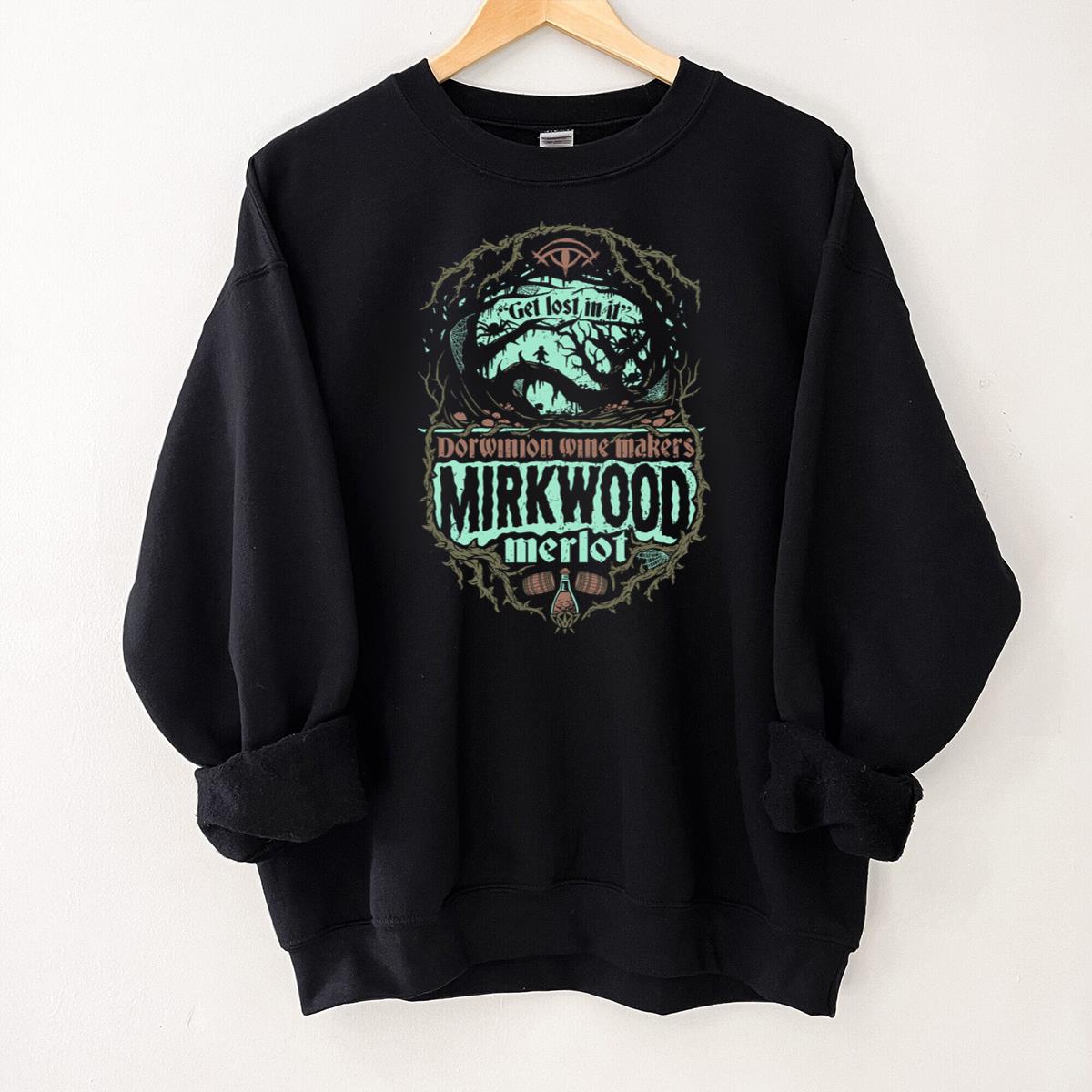 Mirkwood Merlot Wine Graphic T-Shirt – Dark Forest Silhouette, Spiders