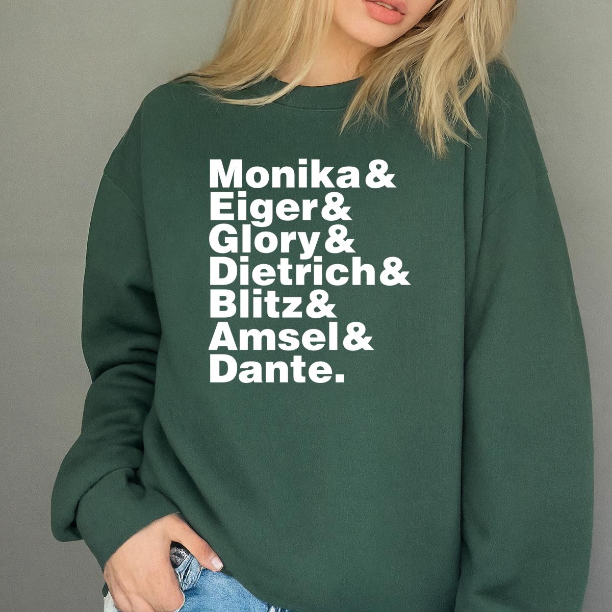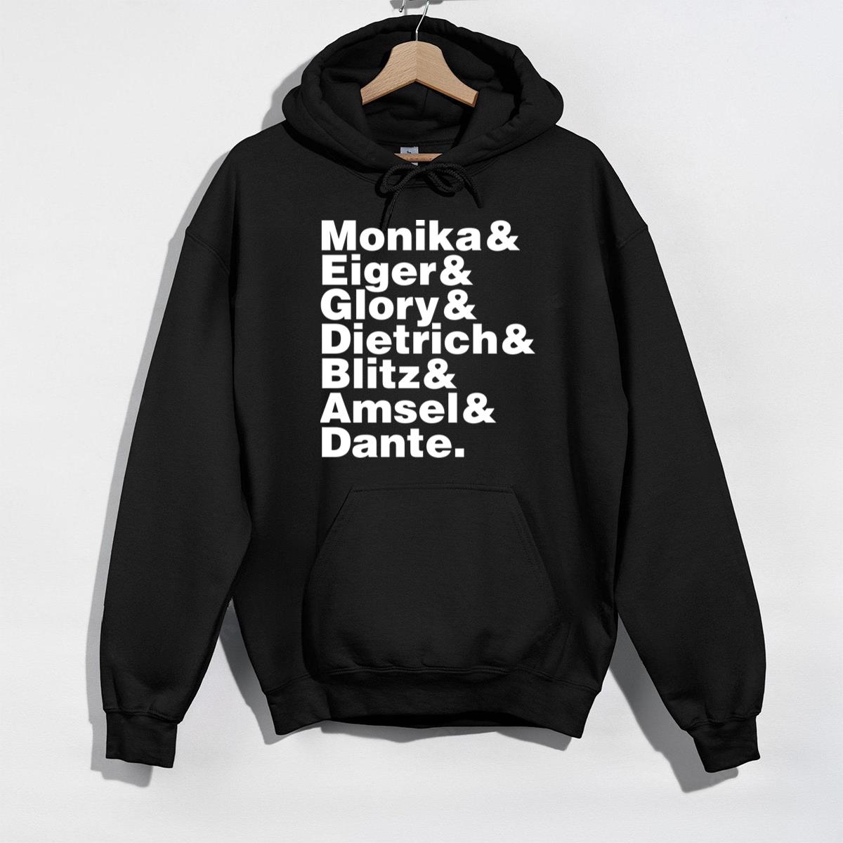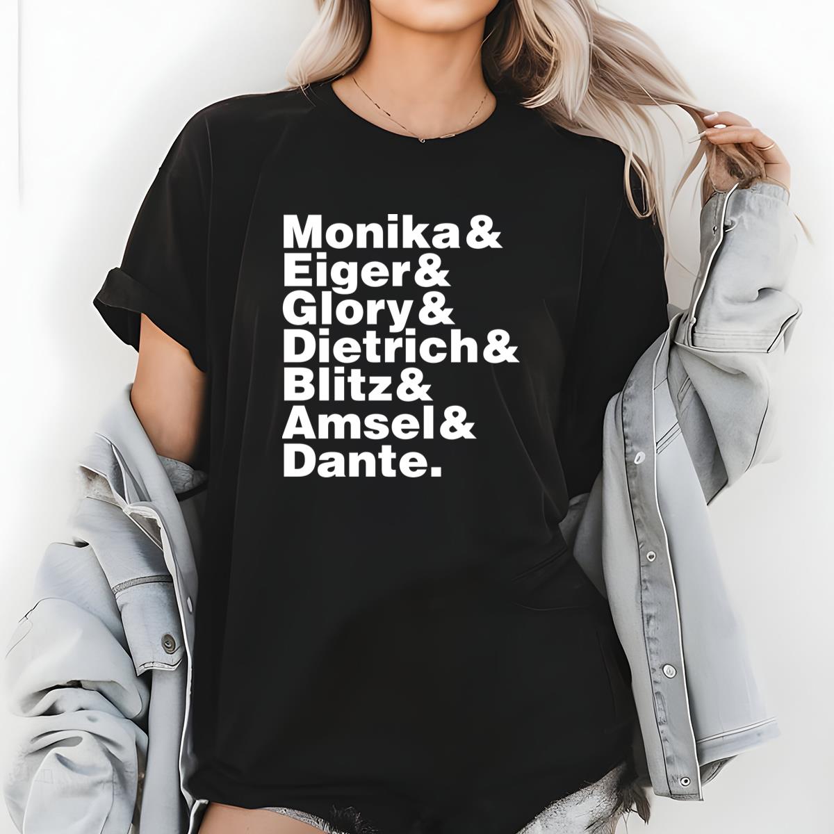Monika Eiger Glory Dietrich Blitz Amsel Dante Names Graphic Tee