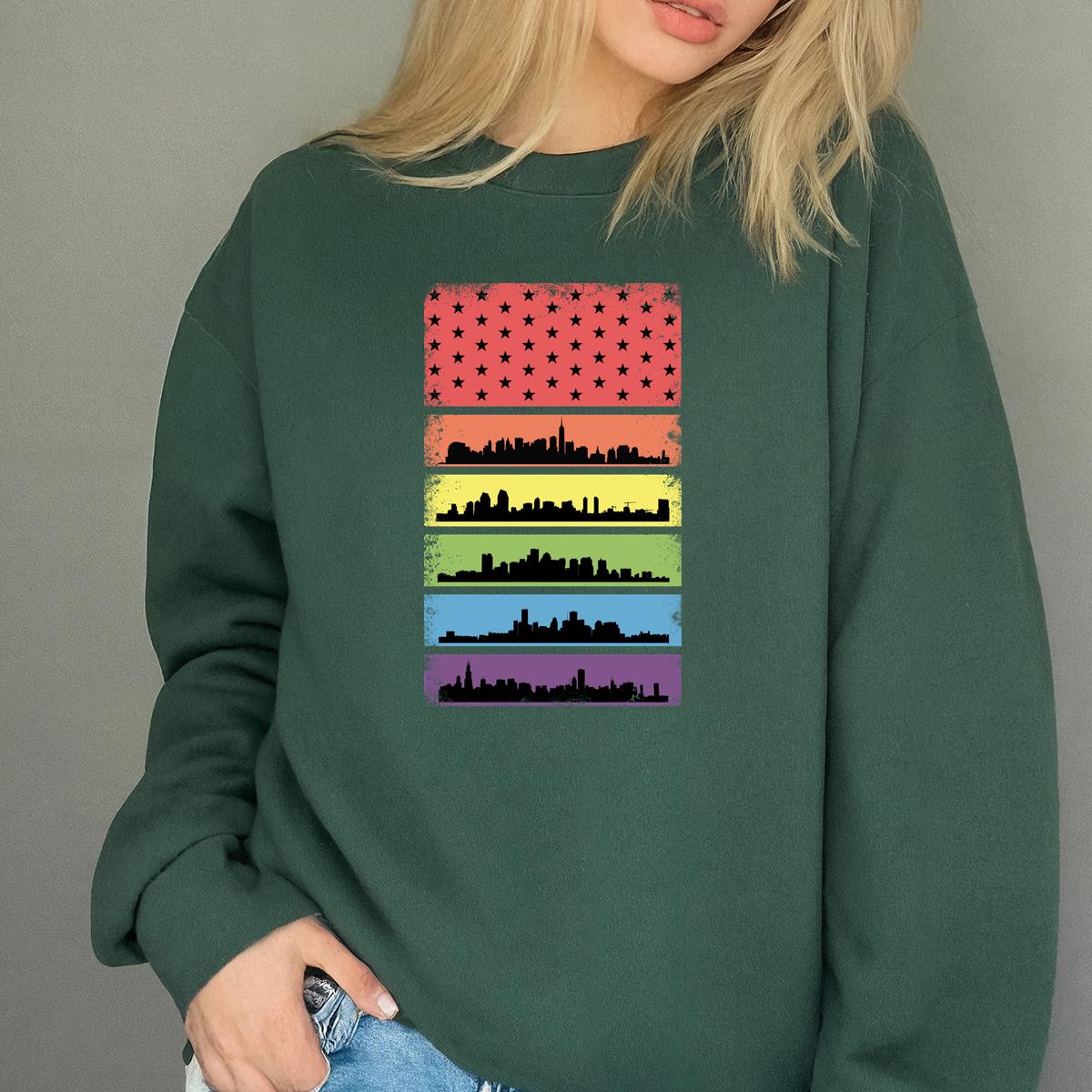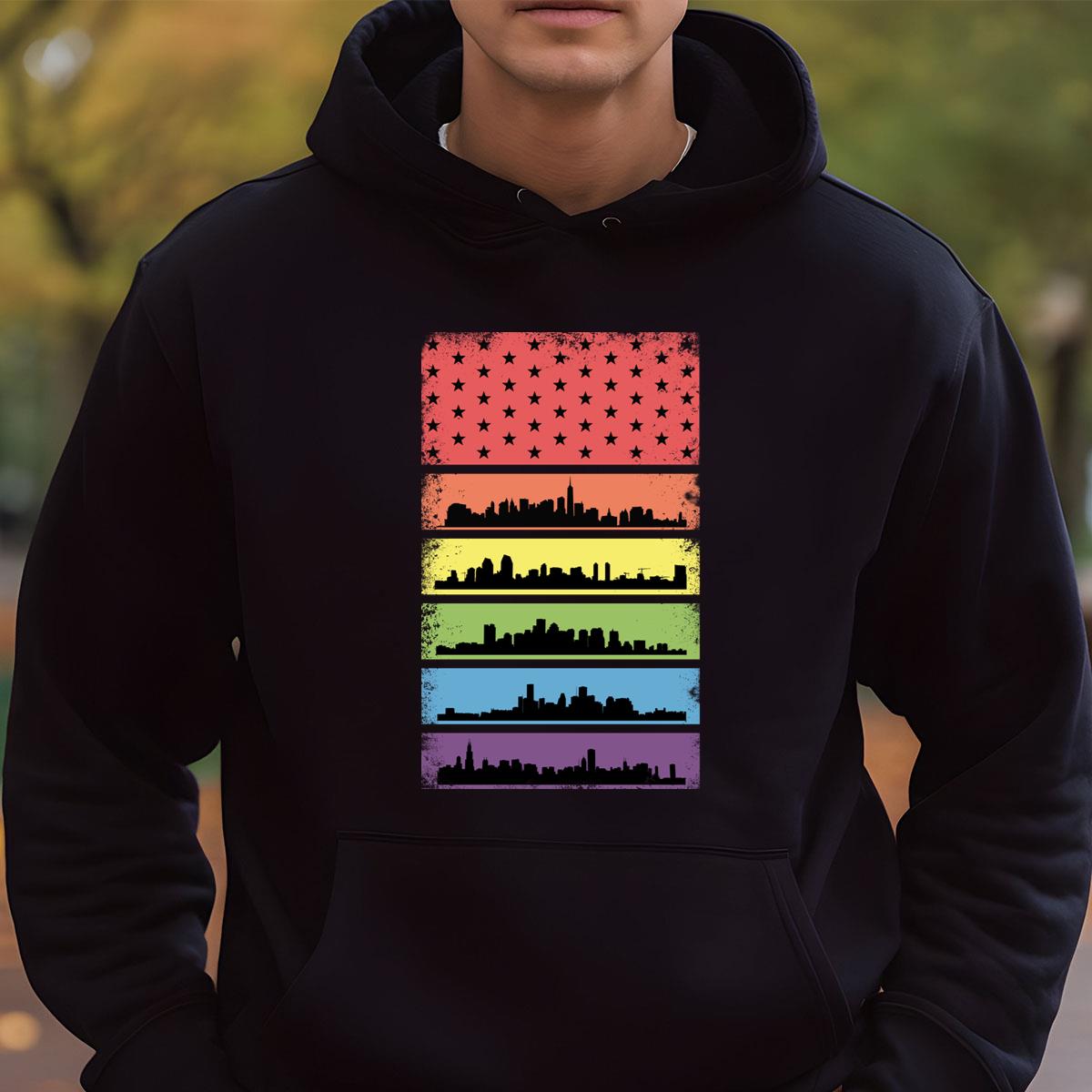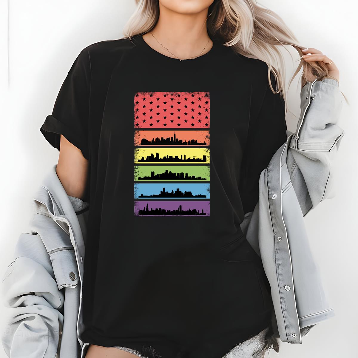 Rainbow City Skyline Stars Vintage Graphic Tee