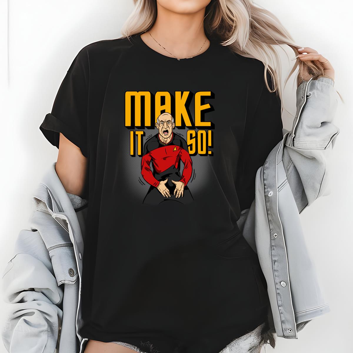 Sci-Fi Captain Funny Graphic Tee – Make It So! T-Shirt
