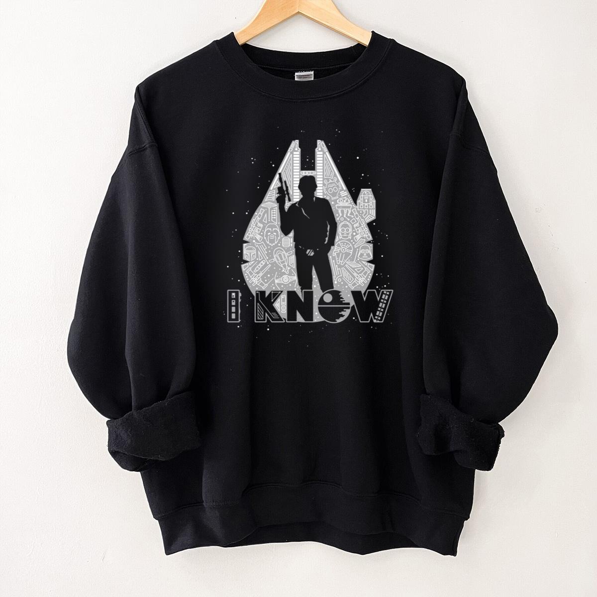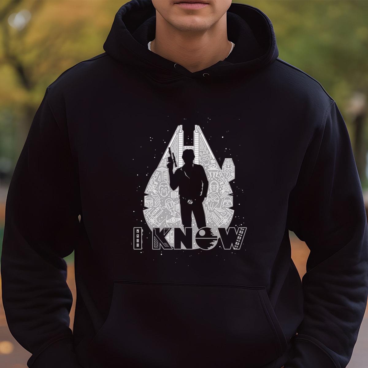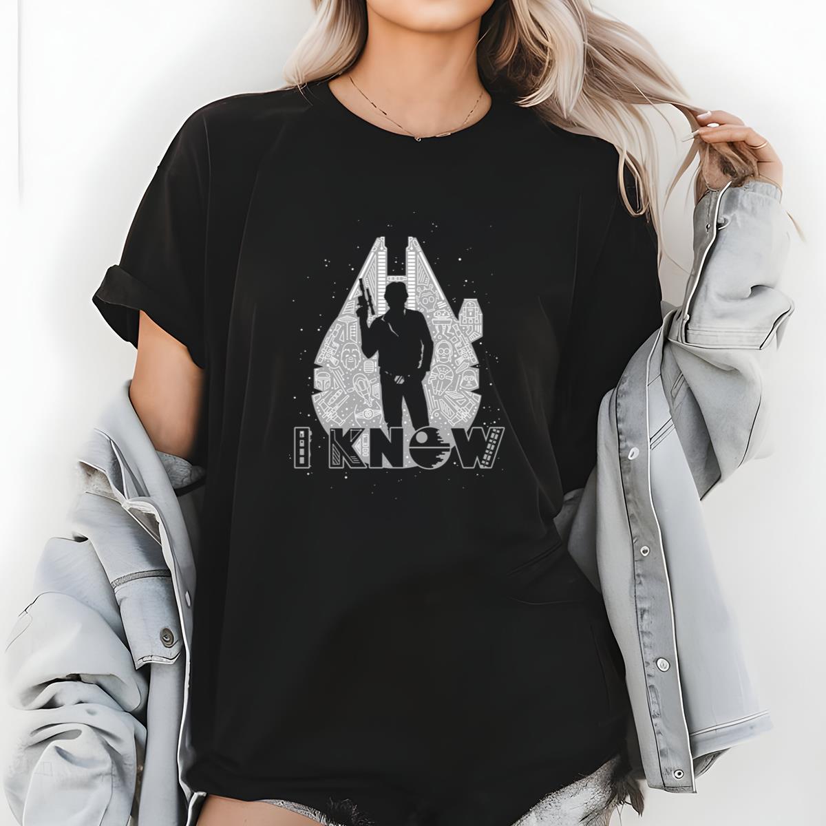 Sci-Fi Han Solo ‘I Know’ Graphic Tee, Millennium Falcon Silhouette T-Shirt