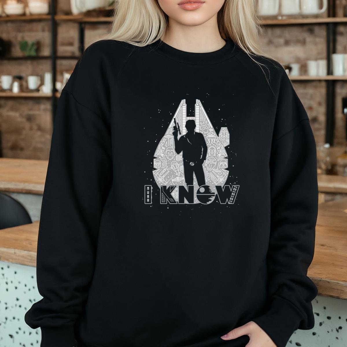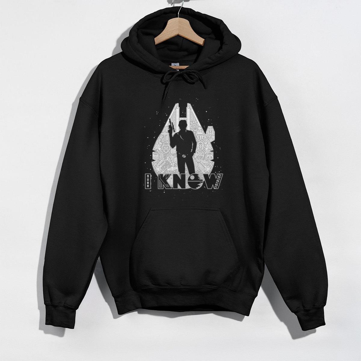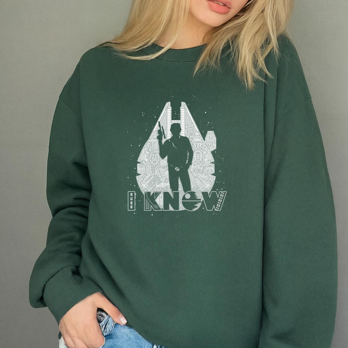 Sci-Fi Han Solo ‘I Know’ Graphic Tee, Millennium Falcon Silhouette T-Shirt