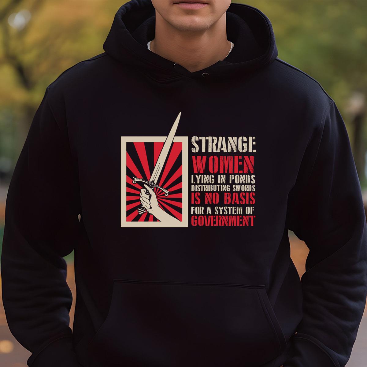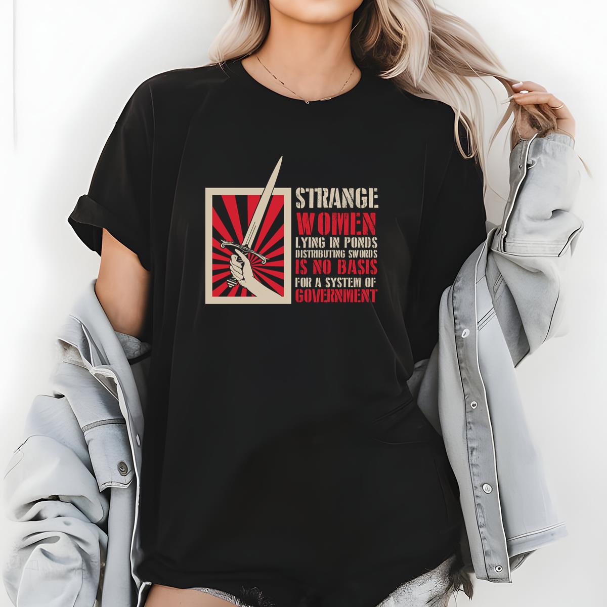 Strange Women Swords Distributing Monty Python Funny Graphic T-Shirt
