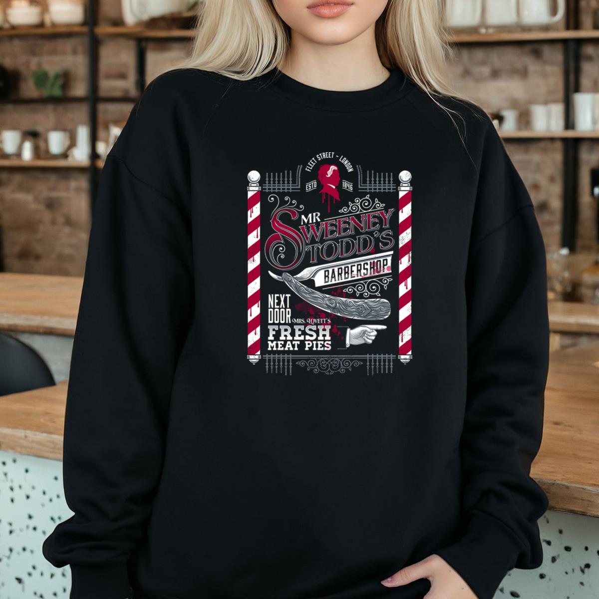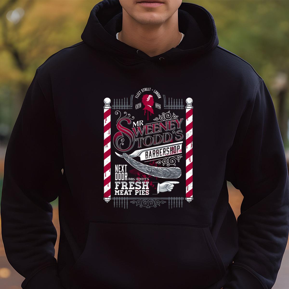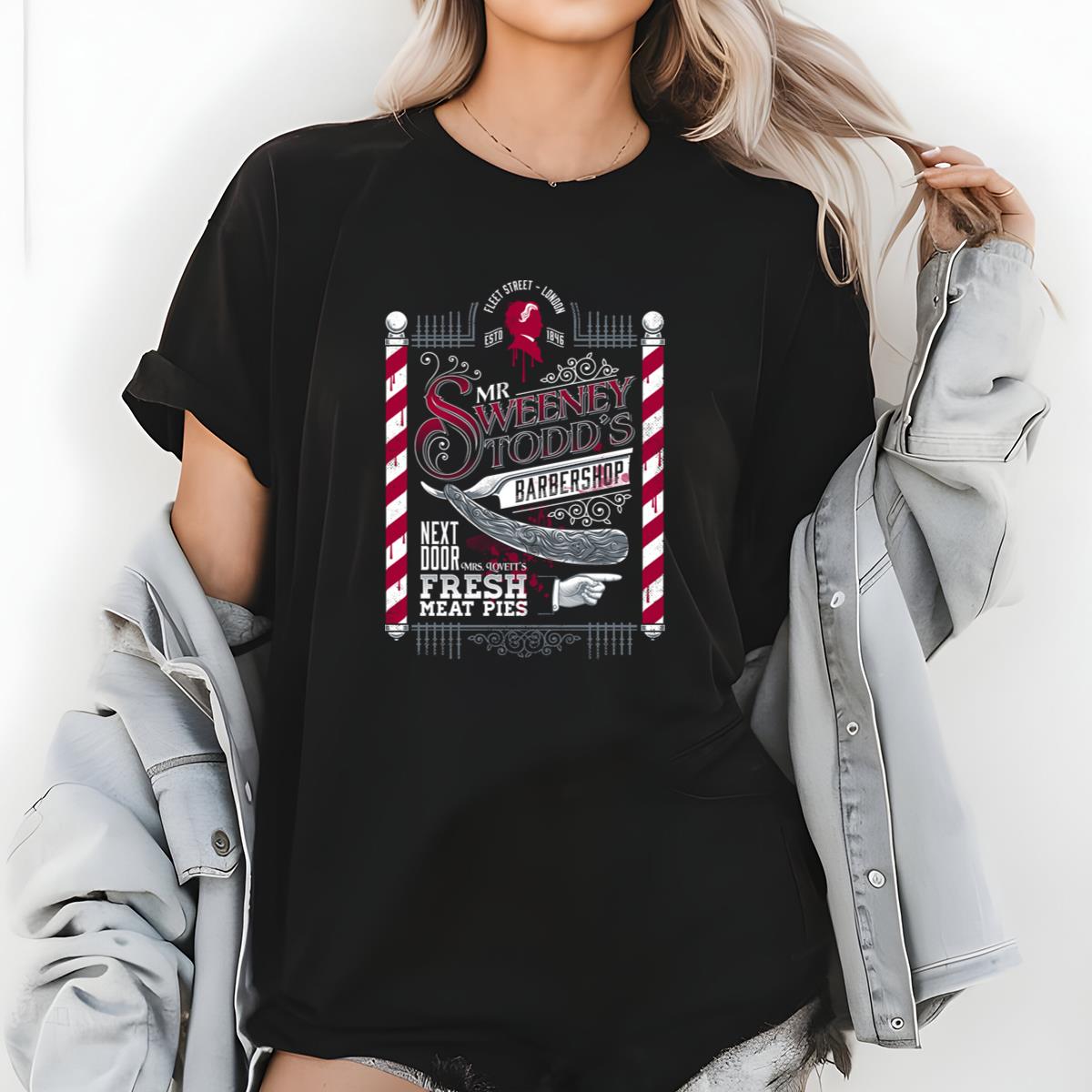 Sweeney Todd Barbershop Graphic Tee – Fleet Street London Horror Movie T-Shirt
